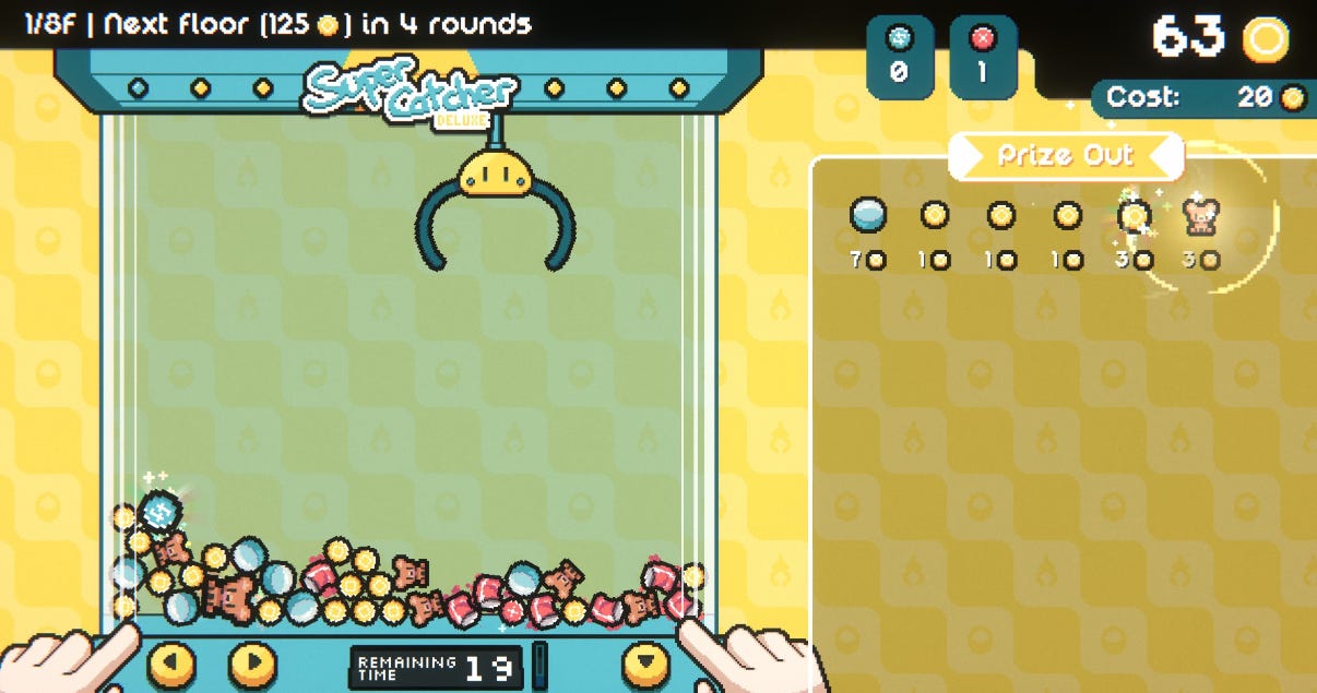 The premise is a dungeon crawler, but you’re a rabbit with a claw machine claw for an arm and you attack enemies by picking up items from the claw machine. Add roguelike elements to the mix and bam, instant addiction.