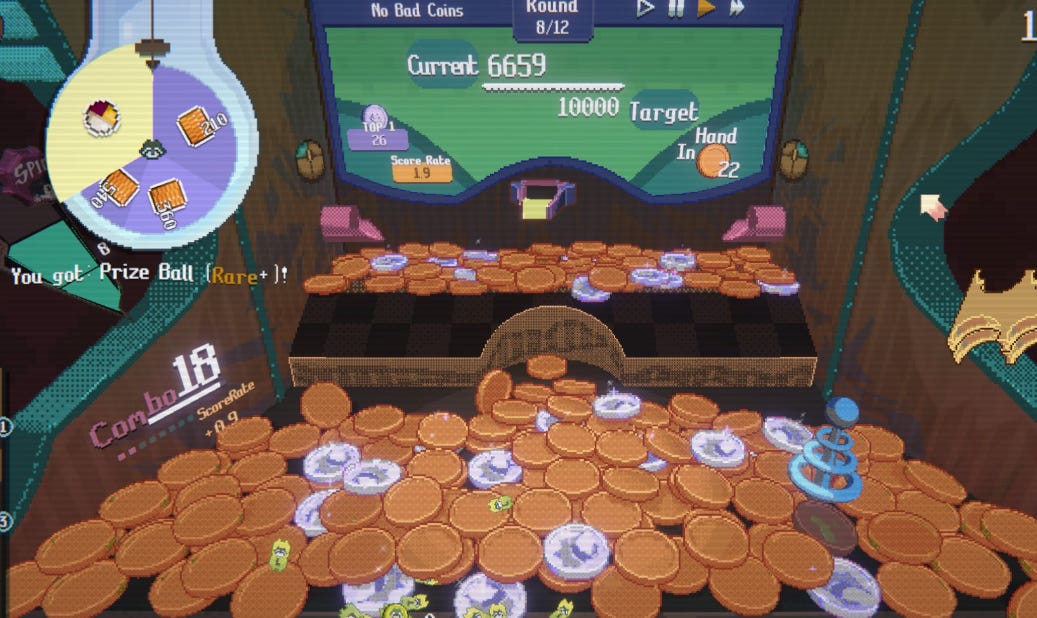 I’ve said before that Raccoin is one of the most addictive loops I’ve ever encountered, and I still mean it. It gives me exactly the same feeling I have when playing a real life coin dozer game, from the comfort of my own desk.